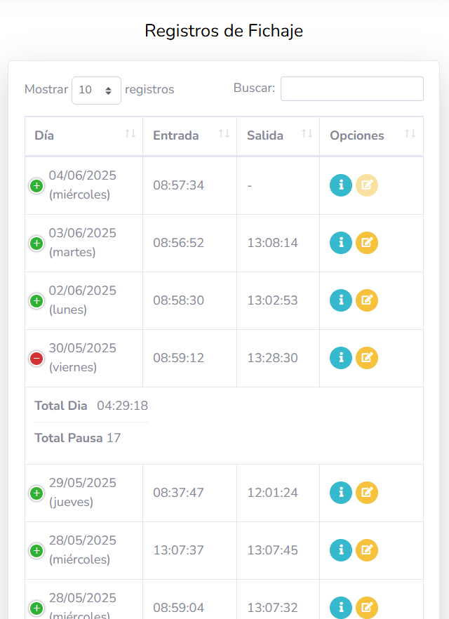 - Fichaje rápido y accesible desde cualquier dispositivo